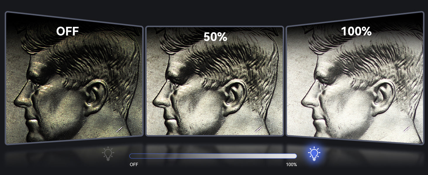 - 【Dimmable LED Lighting】The coin microscope with light features bright LEDs that effectively illuminate the working area. What's impressive is the adjustable brightness, preventing surface washout. With both top and bottom light sources, the top lights can be angled to provide oblique lighting, reducing specular reflections from the object.
