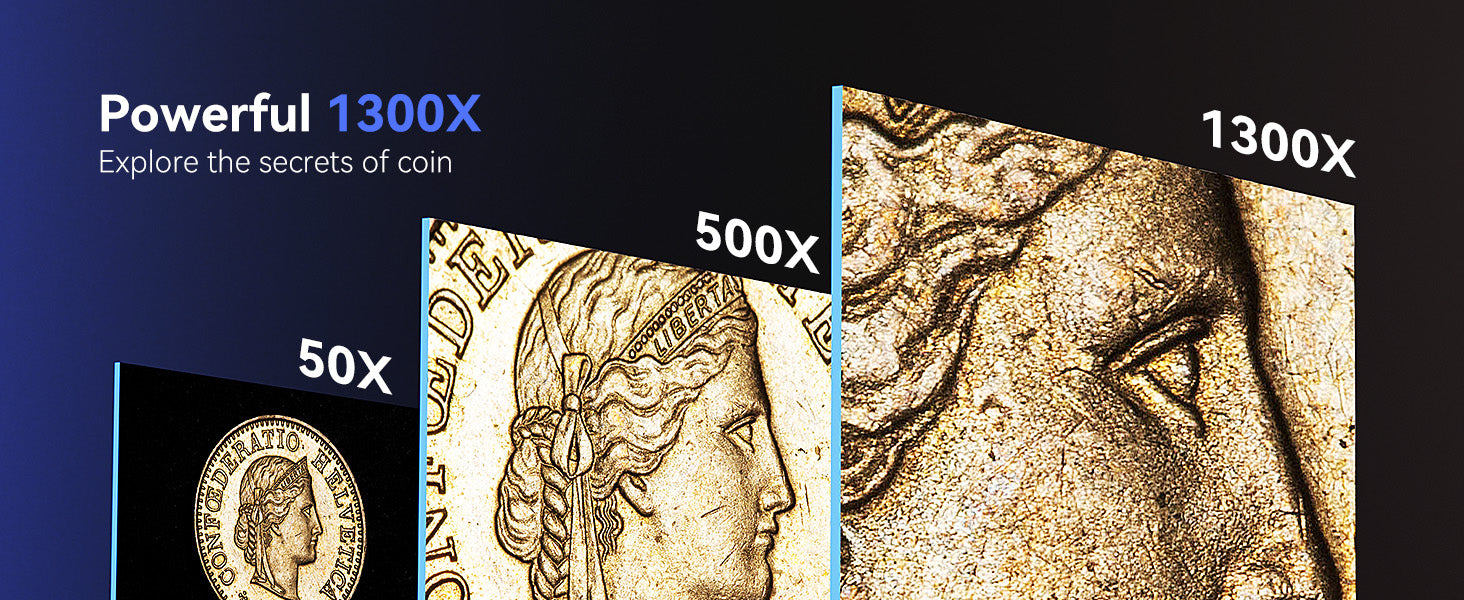 - 【Robust Magnification for Enhanced Clarity】A coin microscope 1300X unveils intricate details of coins and circuit boards, aiding in precise analysis and inspection. It reveals minute imperfections, enhancing numismatic evaluation and electronics troubleshooting. This level of magnification offers invaluable insights for collectors, technicians, and researchers, ensuring thorough examination and accurate assessment of both macroscopic and microscopic features.
