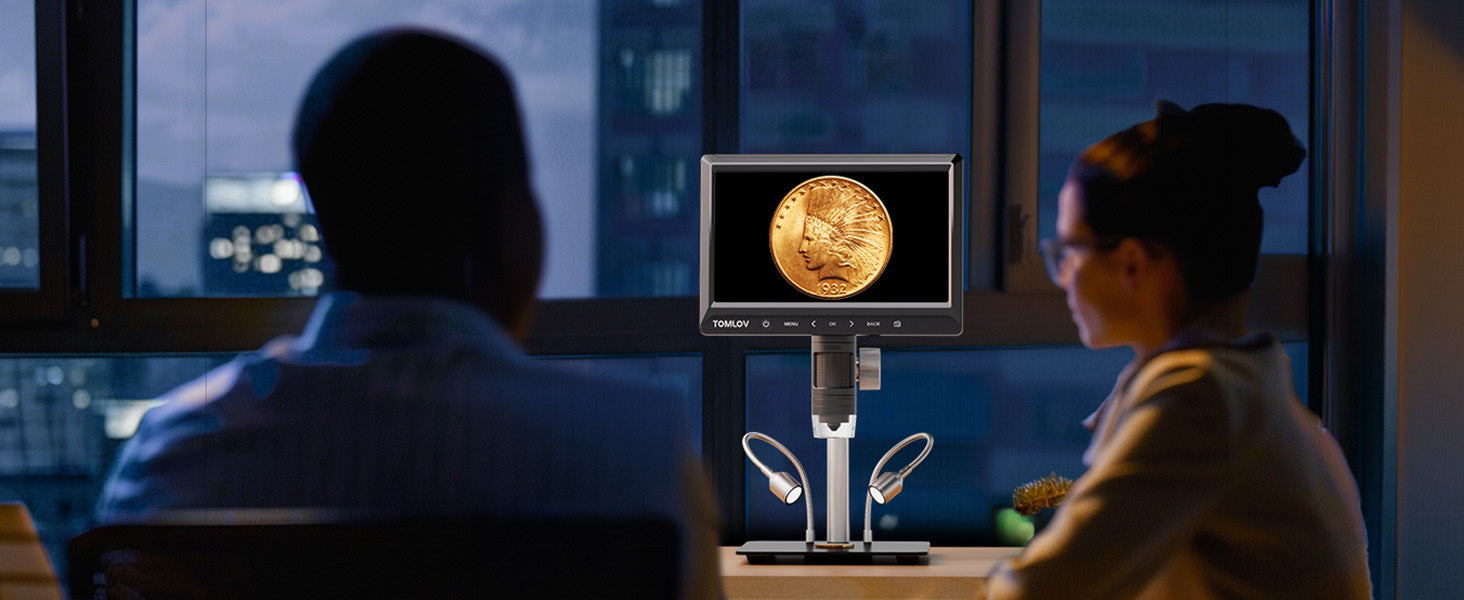 - 【10.1-inch IPS Screen】TOMLOV DM702 Coin microscope with screen llows for precise examination of coins, showcasing intricate details and textures with clarity. Its high resolution ensures fine details are visible, while accurate color reproduction aids in identifying mint marks and flaws. The wide viewing angles of IPS technology ensure consistent visibility from various positions, facilitating thorough inspection and appreciation of coinage.