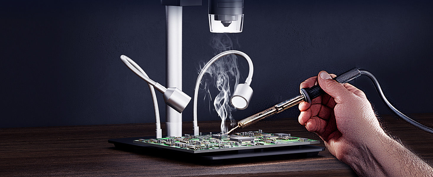 - 【11" Pro Stand, Make Soldering Easier】The digital soldering microscope tall stand provides ample space, accommodating soldering tools effortlessly. Micro-adjustment and 360° seamless rotation enhance precision, while the 7*9-inch large base caters to big circuit boards, ensuring easy soldering. With a 90° screen rotation conforming to ergonomic principles, making it an exceptional soldering platform for PCB electronics enthusiasts.