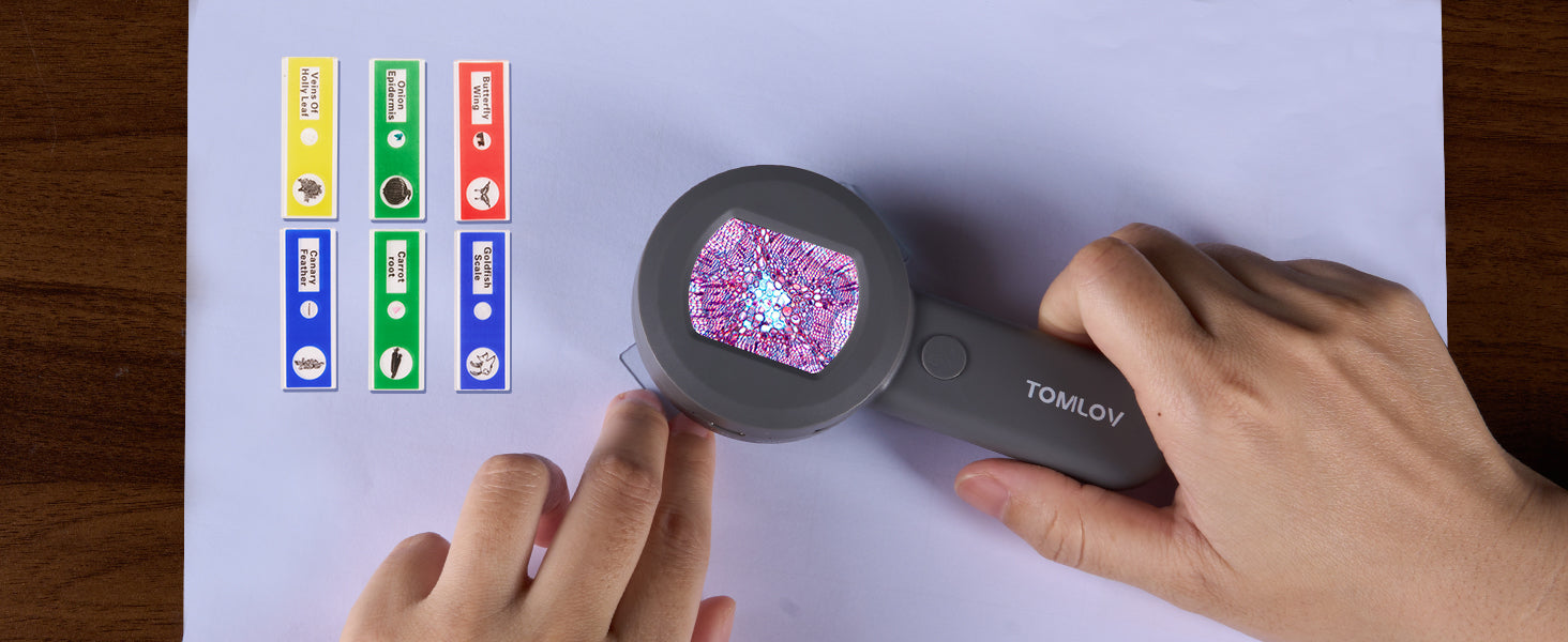 - 【Visible & Shareable 2" LCD Screen】TOMLOV P10 miniscope takes seriously close-up, clear shots of everything. You can use this kids' microscope live on the screen with a great, clear picture. Compared to other pocket microscopes, the easy-sharing screen greatly enhances the fun of exploring nature.