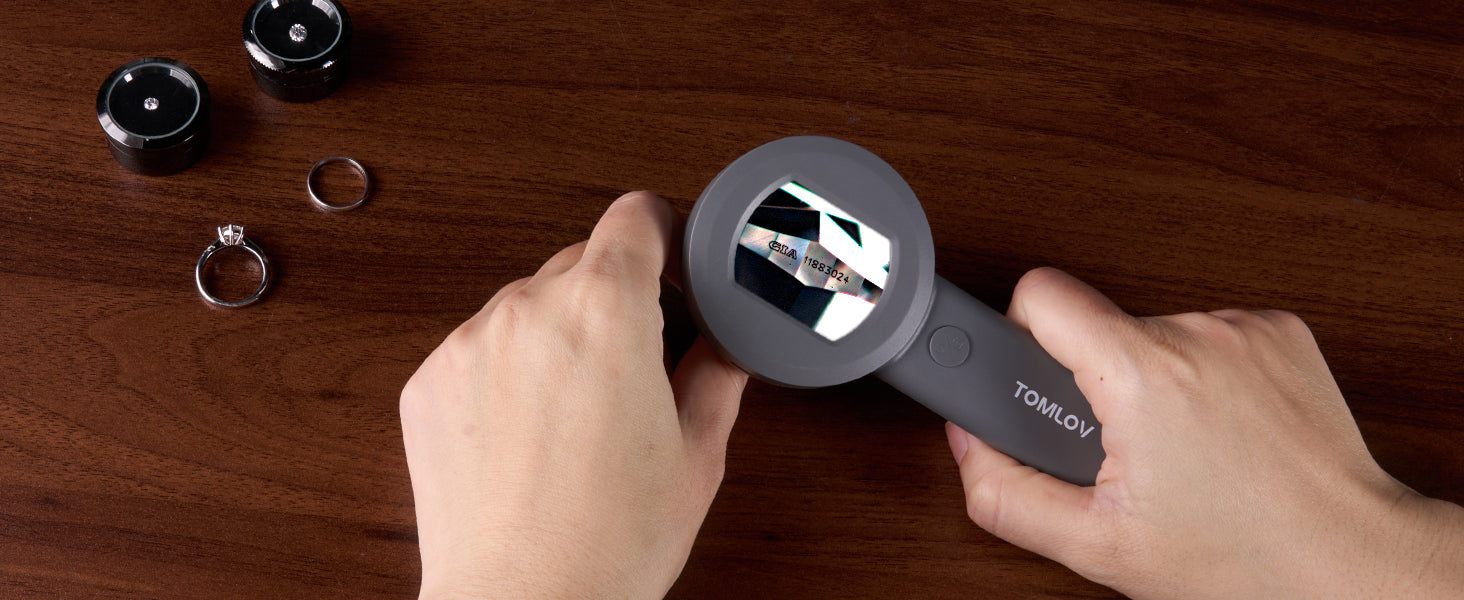 - 【Powerful 100X Magnification】If you work with small items and really need to see up close, this is the loupe magnifier for you. The 100X fixed magnification provides a very clear view of the ring letters. It's nice to have a digital magnifier for jewelry, diamonds, gems, coins, stamps, and rocks to know if you've got the real deal. With great size and optics, all housed in a rugged case, it's an essential tool for anyone who needs precise inspection.