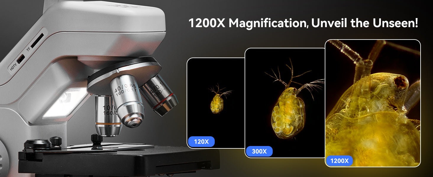1200X Magnification - Triple lens system for versatile observation