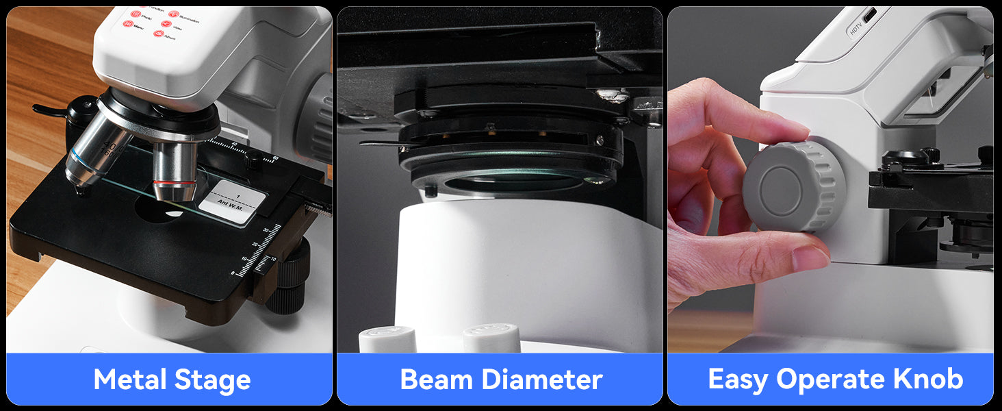 Precision Stage for Slide Control: Accurate X-Y positioning is achieved using the metal stage with 1.0mm scale divisions and dual-layer control, offering excellent stability and focus for any observation task with this advanced biology microscope