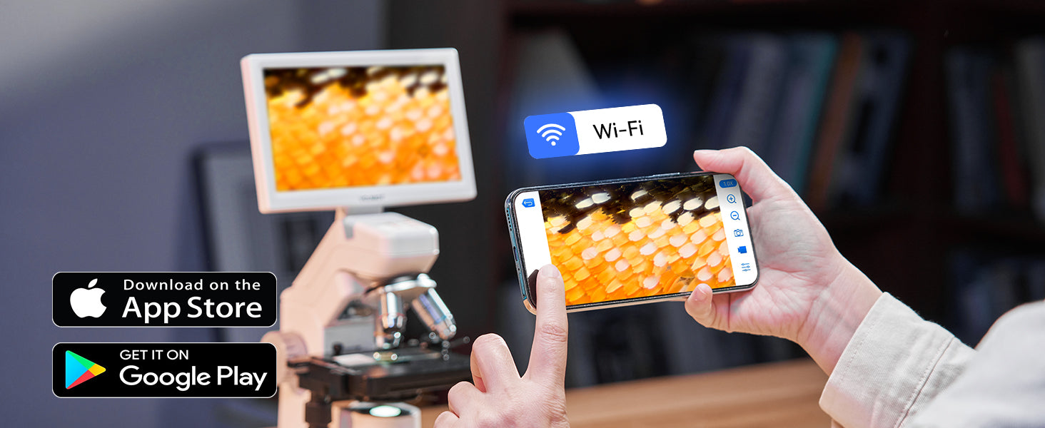 Easy WiFi Viewing and App Control: Real-time zooming, capturing, and sharing are made seamless via WiFi and mobile app, with dual-saving to SD card and phone—this USB microscope works smoothly with Android and iOS devices for wireless convenience
