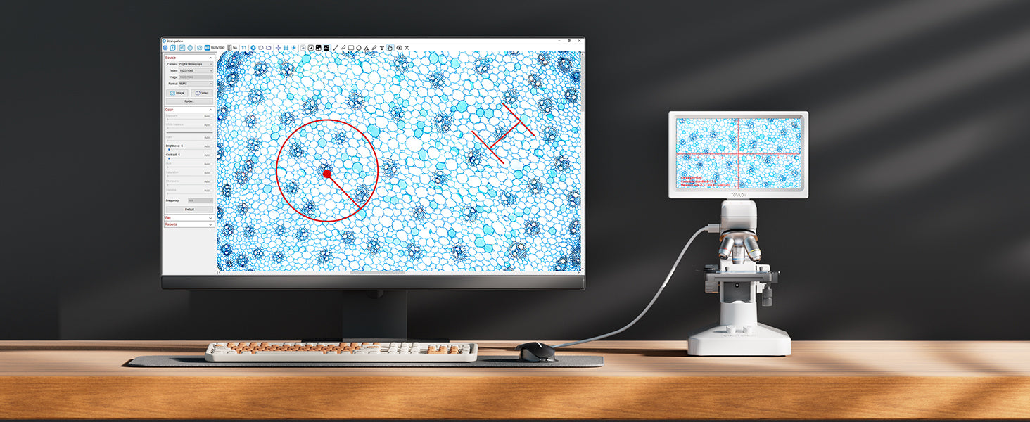 Connect to Big Screens Instantly: Without any driver installation, you can connect directly to TVs, laptops, and projectors via USB or HDMI—perfect for classroom demonstrations and collaborative viewing using this versatile cell microscope
