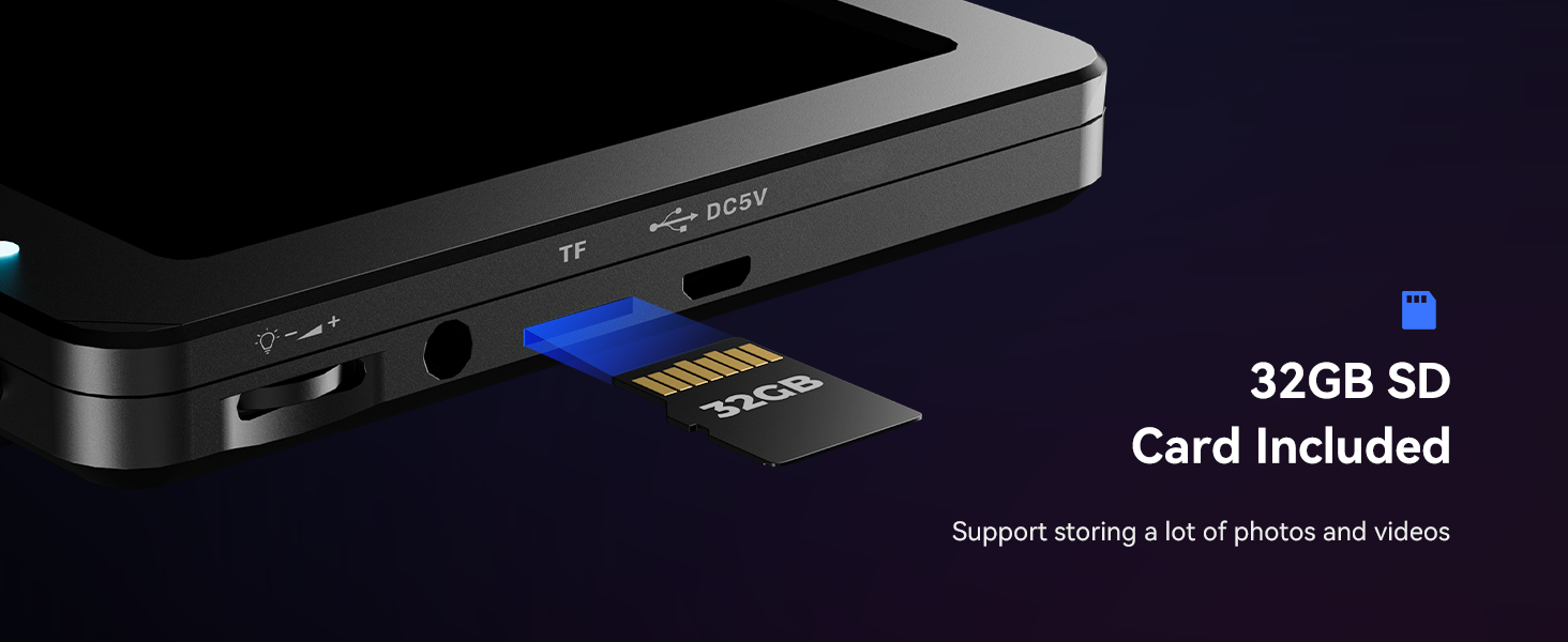 32GB SD Card Included - This microscope includes a Micro SD card to save lots of photos and videos(Press the menu button for 3 seconds to switch “Photographing”, “ Video Recording” and “Playback” mode)