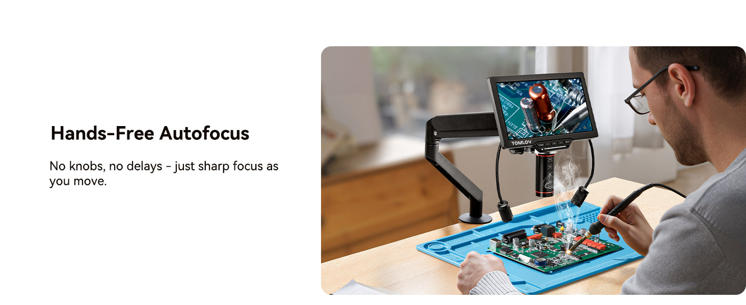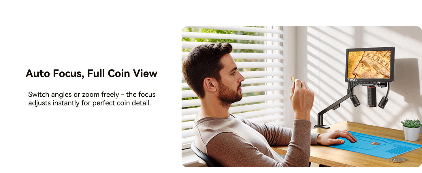 - Auto Focus Digital Microscope: Enjoy hands-free clarity with advanced autofocus; TOMLOV TM3K-AF microscope quickly locks onto your subject, ensuring sharp, precise imaging for soldering and coin inspection