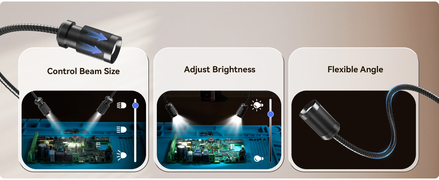- Upgraded Gooseneck Light Coin Magnifier: Dual gooseneck LEDs deliver shadow-free lighting; Adjust brightness and aperture freely to illuminate fine solder joints or reflective metal coins