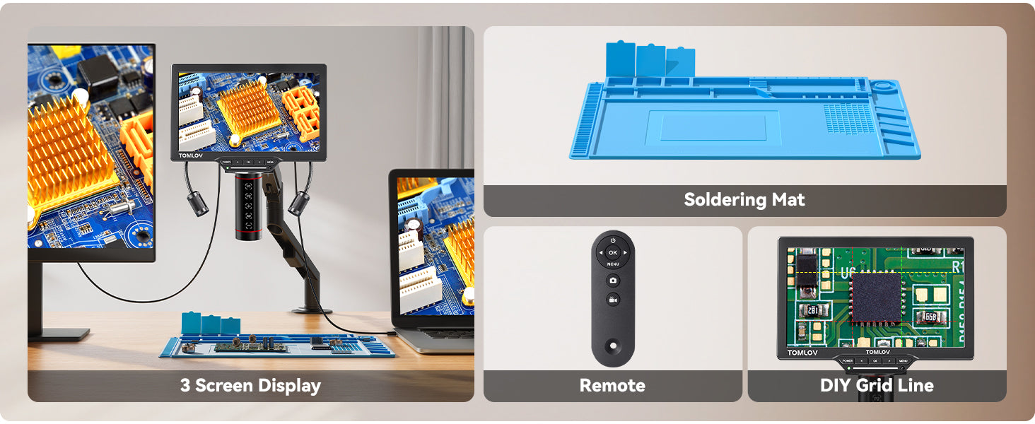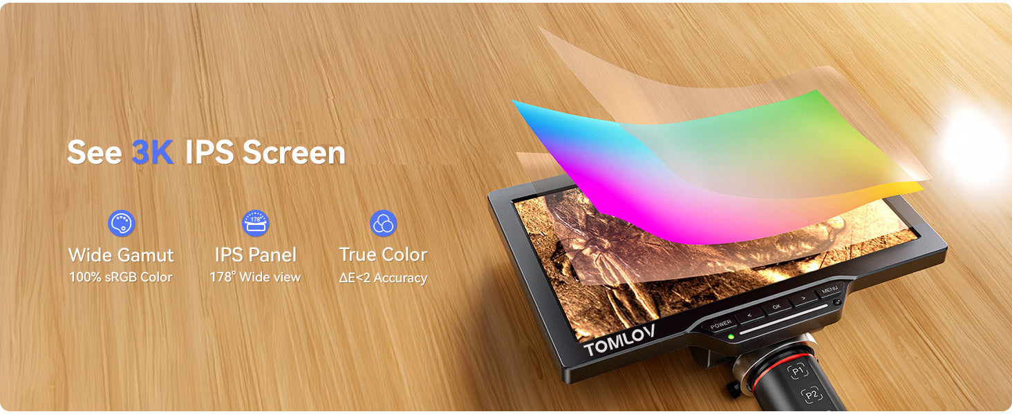 - 7/10-Inch IPS Display Video Microscope: 7″ or 10″ screen with wide color gamut ensures vivid, accurate images; The TOMLOV digital microscope keeps visuals bright and sharp even under strong lighting