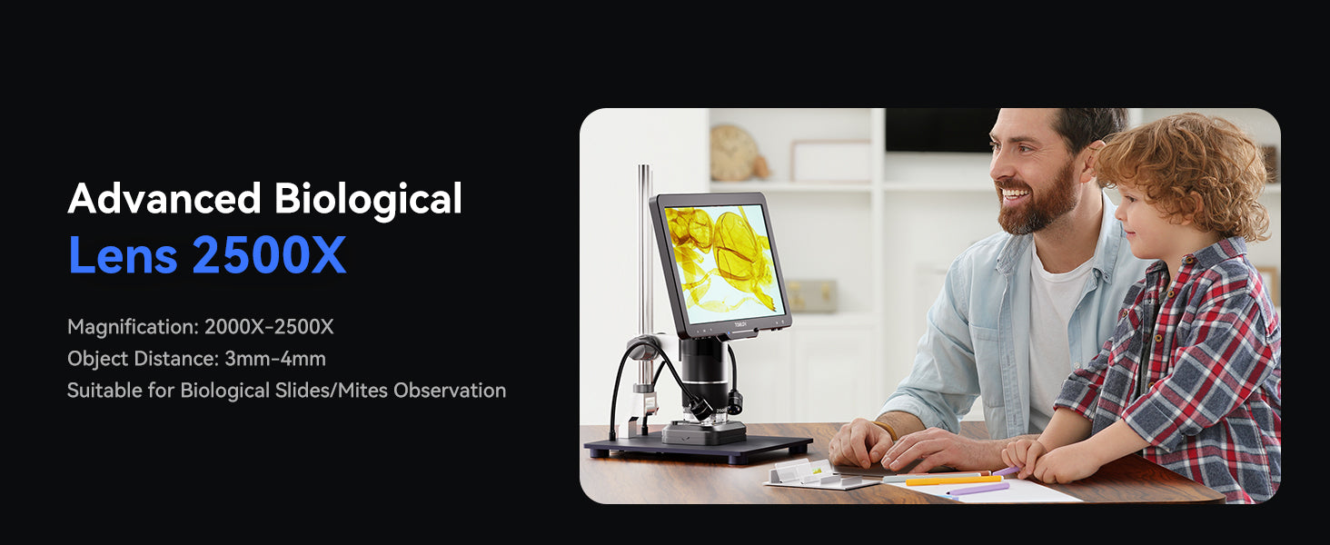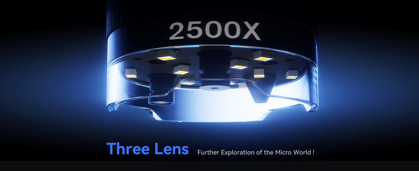 - 【Advanced Biological Lens 2500X】The lens 2500X of this 3 lens digital microscope with a magnification range of 2000X to 2500X. This advanced lens allows you to easily explore the microscopic world beyond the naked eye, making it perfect for observing biological slides with exceptional clarity. Ideal for hobbyists, curious minds and students, our microscope with screen provides the high magnification needed to delve into intricate structures and tiny organisms.