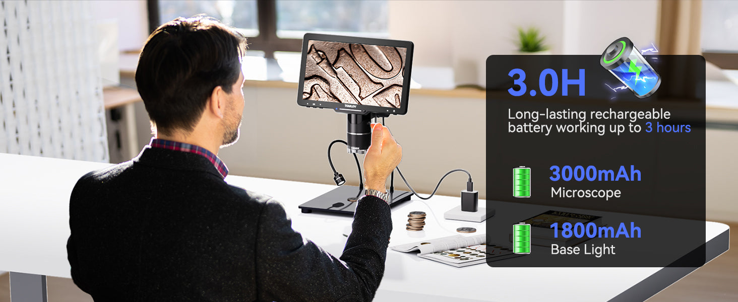 - 【Guarantee an Exceptional Visual Experience】TOMLOV TriL110 3 lens coin microscope features an advanced 10.1-inch IPS screen, HD 24MP photo resolution & 2K video resolution. These advanced features combine to deliver an outstanding visual experience, allowing you to see even the finest details with remarkable clarity, to enjoy stunningly clear images, vibrant colors, and a wide 178-degree viewing angle.