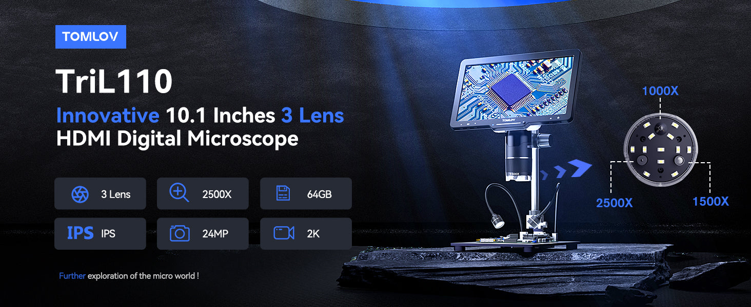 TOMLOV TriL110 10.1" 3 Lens 2K HDMI Digital Microscope
