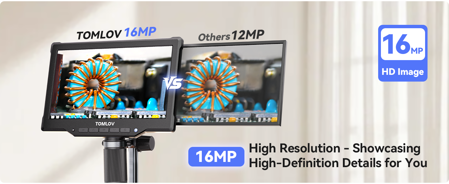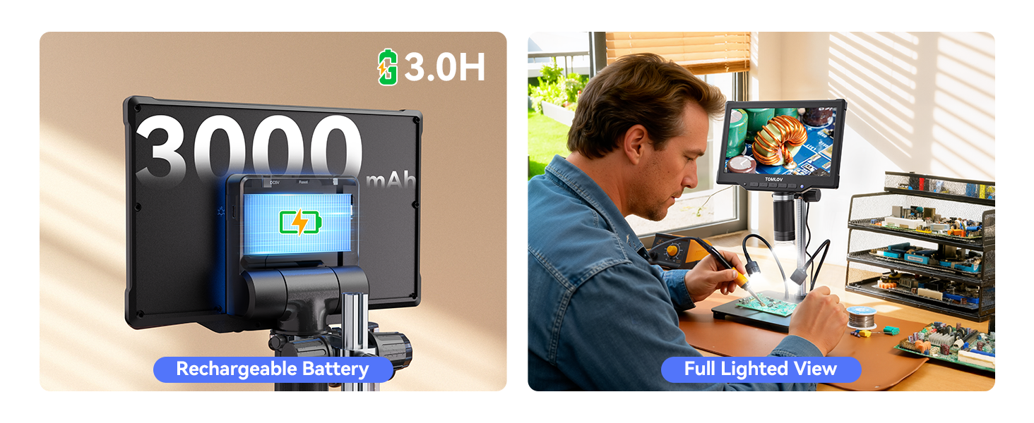 - Power On The Go: Equipped with a 3000mAh rechargeable battery, TOMLOV DM10 electronic microscope enables extended, cord-free observation sessions. Take your exploration anywhere - from the home to the field - and enjoy the freedom to discover without limits, completely untethered from power outlets