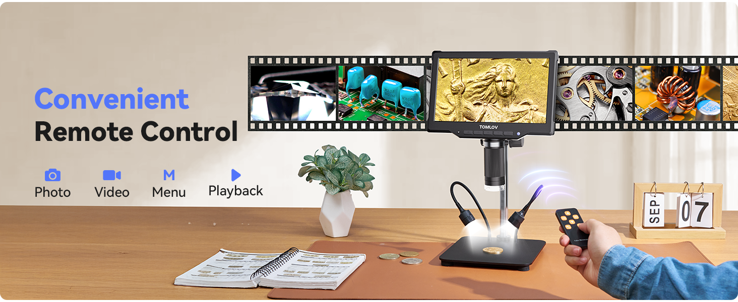 - Convenient Remote Control: This microscope with screen includes a wireless remote for capturing photos and recording videos etc. It minimizes screen shake and sample disturbance, ensuring precise observations and a smoother experience